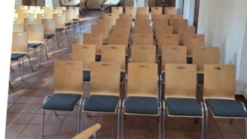 Diese Stühle, die wir ja auch im Gemeindezentrum haben, waren ohnehin vorhanden, standen aber bloß herum und nahmen Platz weg, während die Nachteile der alten Stühle aus der Heppendorfer Kirche immer sichtbarer wurden. Eigentlich also naheliegend, die ordentlichen, pflegeleichten und auch miteinander verbindbaren Stühle für die Kirche zu nehmen. Wir hoffen, dass sie die Bewährungsprobe an Heiligabend bestehen werden und Ihnen optisch genauso gut gefallen wie uns.